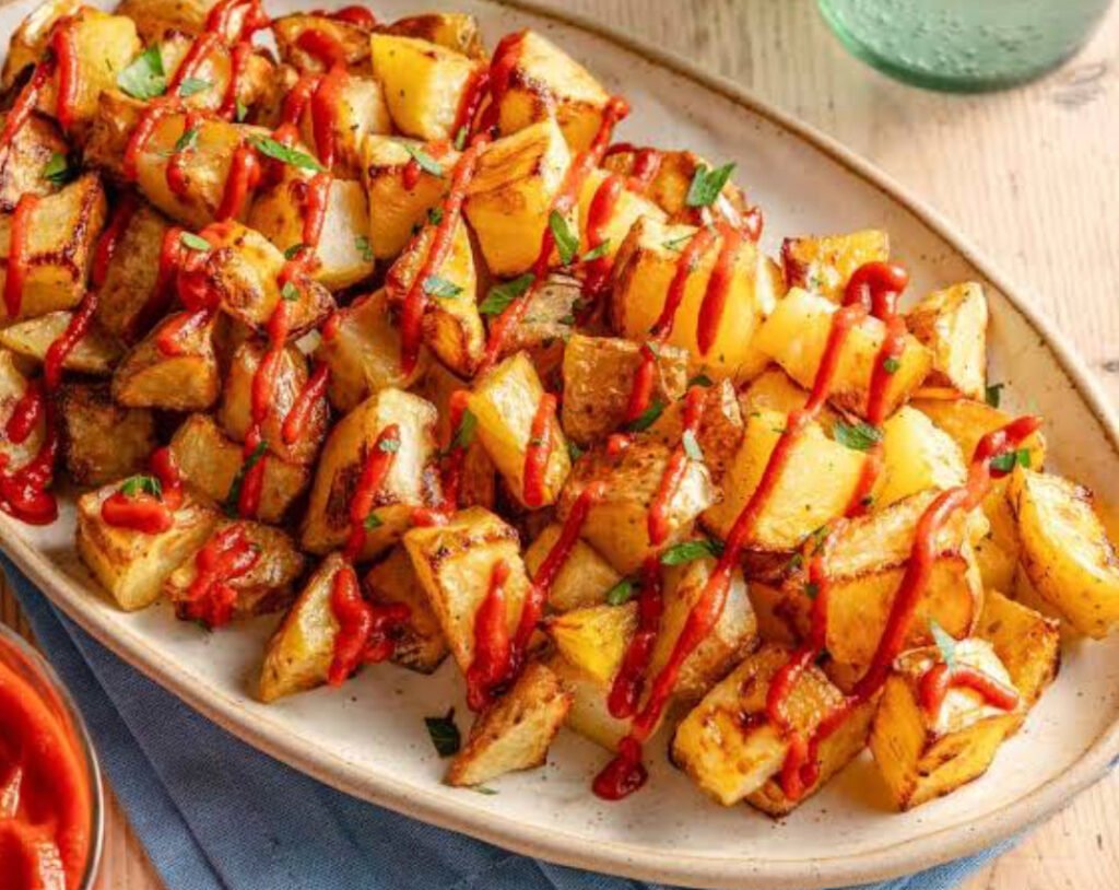 Patatas doradas con salsa brava casera y alioli suave.